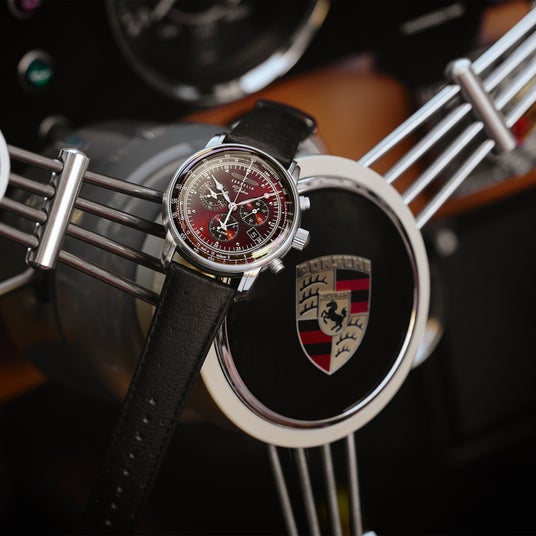 2025年5月16日に発売する新作は、ツェッペリンと同じくドイツを母国とする自動車ブランド、ポルシェの希少なヴィンテージレザーをストラップに使用した数量限定モデルです。ポルシェのクラシックカーで使用されていたレザーのみを厳選。シボレザーとパンチングレザーの2モデルを発売します。
