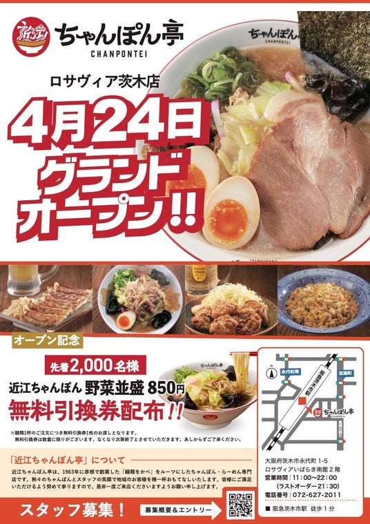 近江ちゃんぽん亭 ロサヴィア茨木店2025年4月24日(木)グランドオープン!
