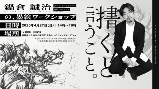 株式会社MEIALUA(本社:福岡市中央区、代表:入江凌生)は、2025年4月27日(日)、北九州市八幡西区・黒崎商店街の一角「コトブキリビング」にて、墨絵アーティスト・グラフィックデザイナーであるNABE(鍋倉誠治)による墨絵ワークショップを開催いたします。