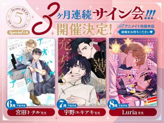 そして5周年を記念し、アニメイト池袋本店での3ヶ月連続サイン会の開催も決定いたしました。