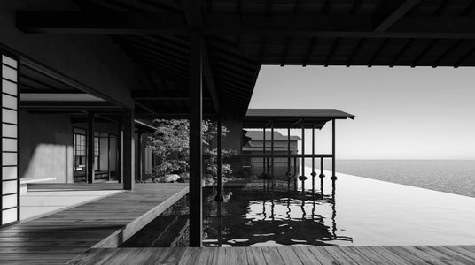日本の伝統的な木造建築の美しさを現代的に再解釈し、訪れる人に特別な時間と体験を提供。海に浮かぶ迎賓館プロジェクトを展示