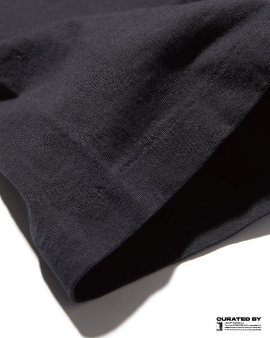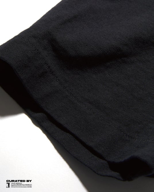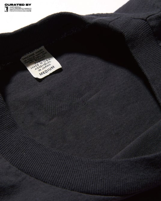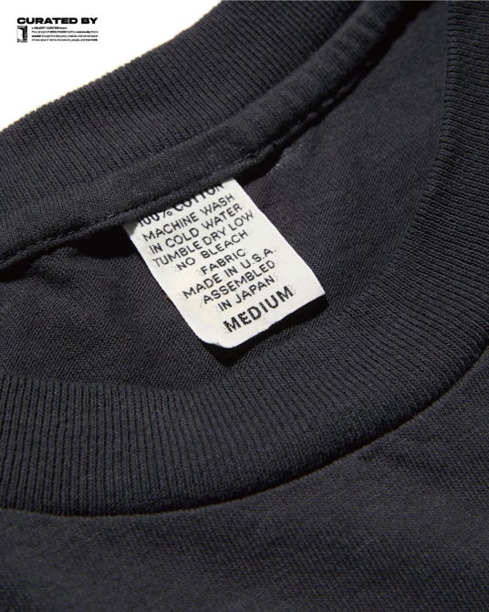 乾燥機文化のアメリカ特有の縮んだかのようなやや短めな丈感と、丸胴ならではの横に伸びきった感の身幅広めなボックスシルエット。加工をしていなくてもどこか古着感を感じさせる雰囲気に仕上がっています。昨今の古着市場では、ヴィンテージのバンドTシャツは年々高騰しており、数十万~数百万円で取引されています。1万円台で購入出来る当時モノに負けないクオリティで「服好き、カルチャー好きが納得して買える、着れるTシャツを」という思いが詰まったボディが誕生しました。