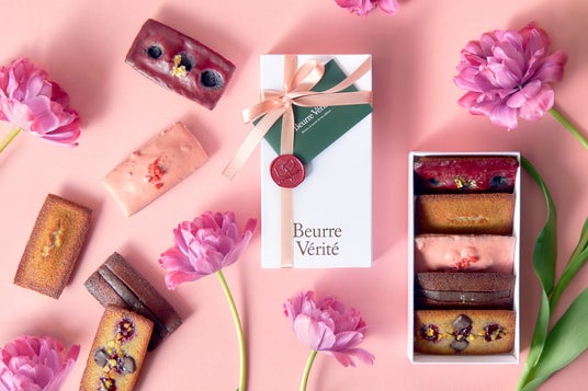 芳醇な香りとコク深い味わい、程よい酸味が特長のフランス産発酵バターを贅沢に使用した、「ブール・ヴェリテ」のシグネチャー焼き立てフィナンシェ。人気フレーバーやシーズナルに加え、母の日限定で特別にご用意した2種のフレーバーを含む、全5種のフィナンシェを詰め合わせました。