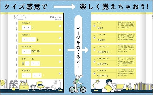本書に載っているためぐちはすべて6文字以下。一部を空欄にしているので、クイズ感覚で気軽に読んでいるうちに「ためぐち韓国語」が楽しく身につきます。