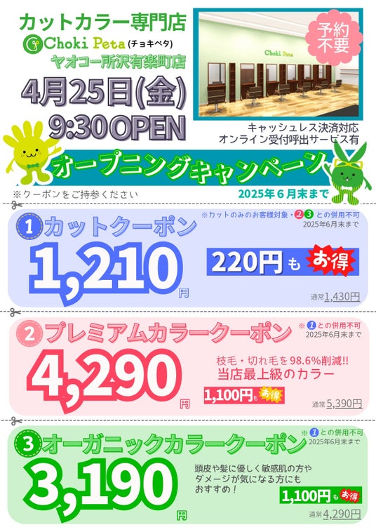 カットカラー専門店 チョキペタ ヤオコー所沢有楽町店が4月25日(金)オープン