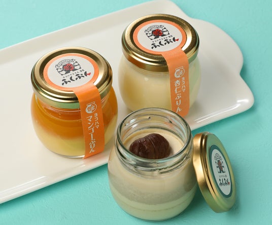ヨコハマぷりん96ふくぷん 左:マンゴーぷりん/中:プレミアム天津甘栗ぷりん/右:杏仁ぷりん