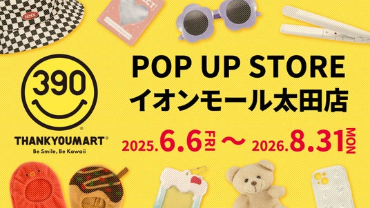 「Be Smile, Be Kawaii」をテーマに、キャラクターの限定アイテムを中心としたカワイイ推しグッズがいつ来てもALL390円で手に入るショップ「サンキューマート」は、2025年6月6日(金)よりイオンモール太田2F(群馬県太田市)にポップアップストアをオープンいたします。