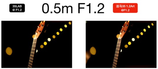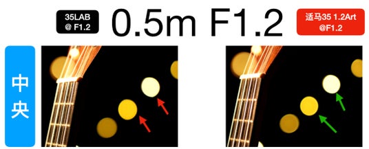 この0.5mという撮影距離は、35mmレンズで強いボケを得る現実的な作業距離と考えられ、この条件下で得られたボケ形状は実際の使用シーンをよく反映していると言えるでしょう。