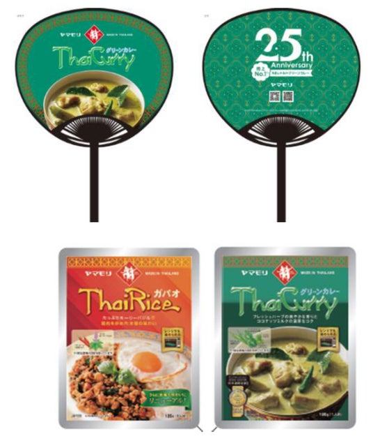 ヤマモリタイカレー グリーンを印刷したオリジナルのうちわをプレゼントします。