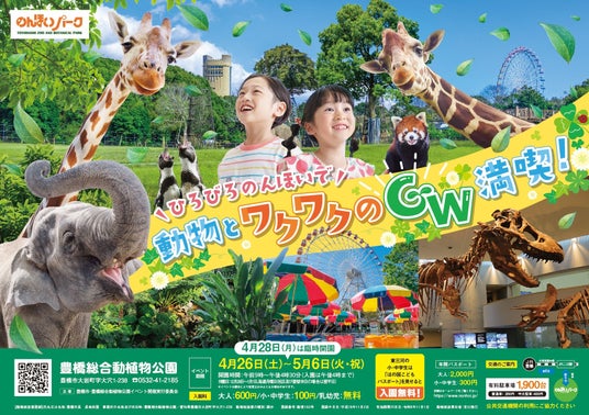 おでかけにぴったりなゴールデンウィーク。新緑がみずみずしく、そよ風が気持ちいい中、動物たちがのびのびと過ごす様子が見られる豊橋動植物公園のんほいパークでは、GWの特別イベントを開催します。
