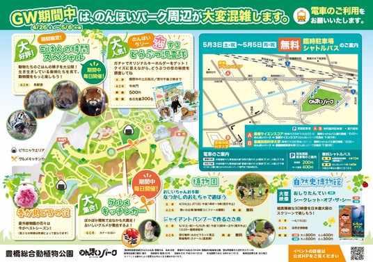 GW期間中、のんほいパーク周辺は大変混雑いたします。公共交通機関でのご来園にご協力ください。