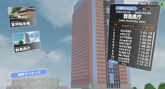 新コース「群馬県庁」では、メタバース(仮想空間)に群馬県庁舎を高精細に3D再現しました。さまざまな仕掛けをかわしながら、リアルに再現されたレース空間をドローンで駆け抜ける体験を提供します。