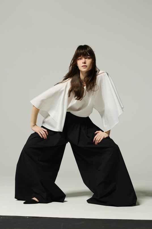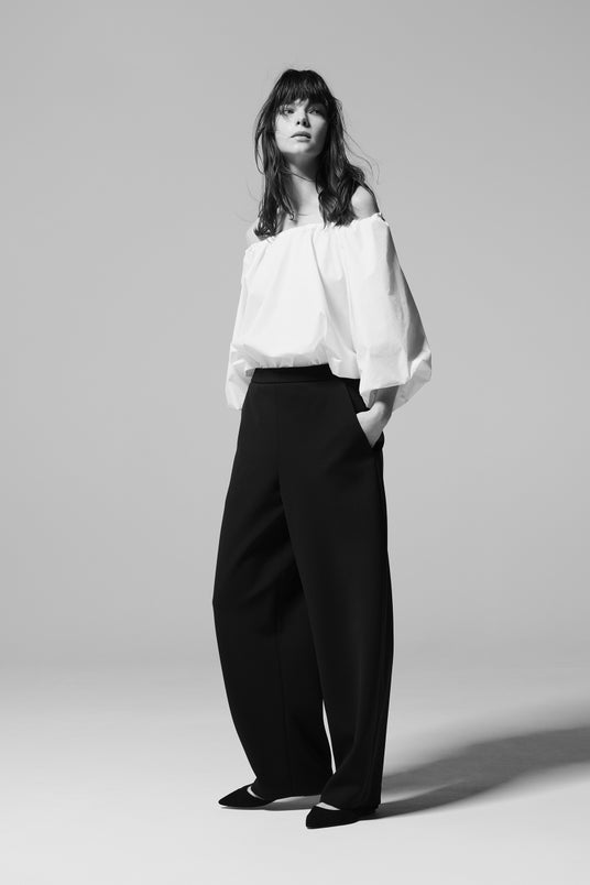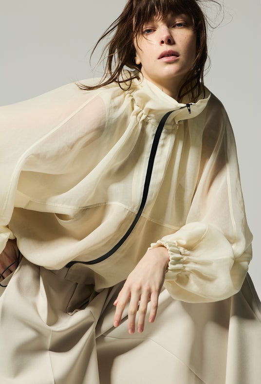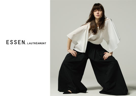 クリーンなマテリアルやカラーで清潔感や透明感を表現しつつも、 ボリューム感のあるギャザーパンツや、肌見せのバルーンシャツなどで抜け感をプラス。 ESSEN.LAUTREAMONTが考える女性らしさを 洗練と抜け感が交錯するスタイルとしてご提案。