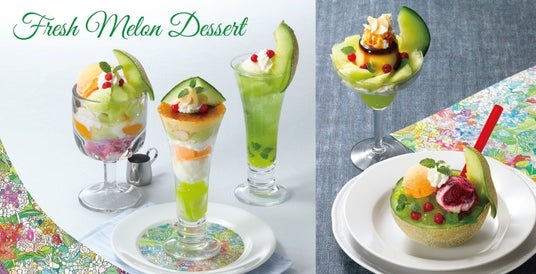 メロン半分を贅沢に使用した「フレッシュメロンボウル~ジンジャーシロップ添え~」などをご用意いたしました。メロンの甘さとジンジャーシロップのピリッとした辛みと香りとの調和をぜひご堪能ください。さらに、プリンとメロンの組み合わせがどこか懐かしい「メロンのプリン・ア・ラ・モードパフェ」や、飲むデザートとして楽しめて、ミントの爽快感がアクセントとなる「メロンジュレクリームソーダ」も登場。初夏にぴったりなみずみずしくさわやかなメロンデザートをお楽しみください。