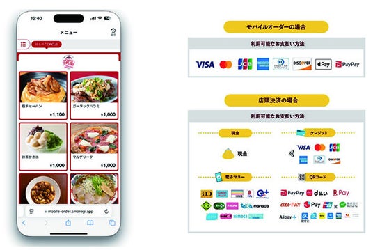 イベントの注文・決済システムは「スマレジ」のシステムを導入。料理の注文は、店頭決済またはモバイルオーダーを選んでいただけます。