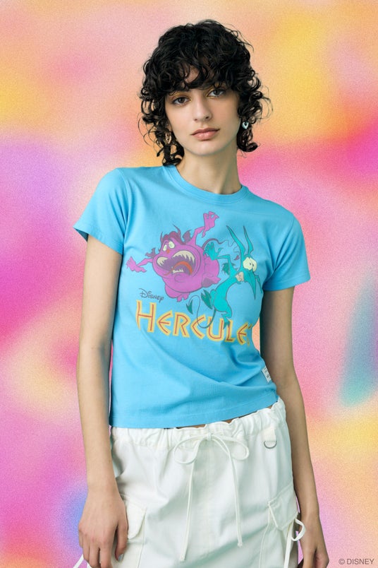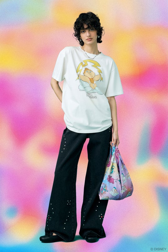 1997年に公開された長編アニメーション映画『ヘラクレス』(原題:Hercules)からは、愛らしい赤ちゃんのヘラクレスとペガサス、そしていたずら好きのペインとパニックに焦点を当て、遊び心あふれるエネルギーとアイコニックなデザインで雷や炎の部分にオーロララメプリントを施し特別感を演出したオーバーサイズTシャツ、カラーごとに異なるデザインでコンパクトな女性らしいシルエットのTシャツ、オリジナルで組み上げた総柄を落とし込んだショッピングバッグを展開。