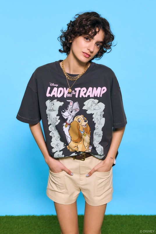 子犬時代のレディとトランプが胸元に繊細に手刺繍風に落とし込まれ着古したような加工感とフリルがかわいいキャミソールや、絵本の表紙をイメージしレディとトランプの様々な表情をしたアートを並べたオーバーサイズTシャツ、レディとトランプの子供達をカラーごとに異なるアートをセレクトしアイレット天竺と爽やかなカラーで表現したTシャツを展開。