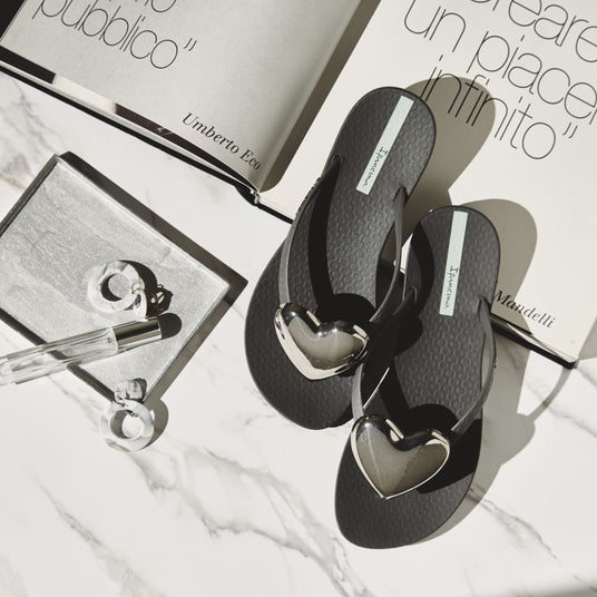 2025年の新作「MAXI FASHION VI」は、大きなメタリックのハートプレートが目を引く、イパネマらしいアイコニックな一足。人気の「VIBE SANDAL」には、透明感のあるべっ甲デザインが加わりました。足元を上品かつ軽やかに見せ、夏のコーディネートを洗練された印象に仕上げてくれます。