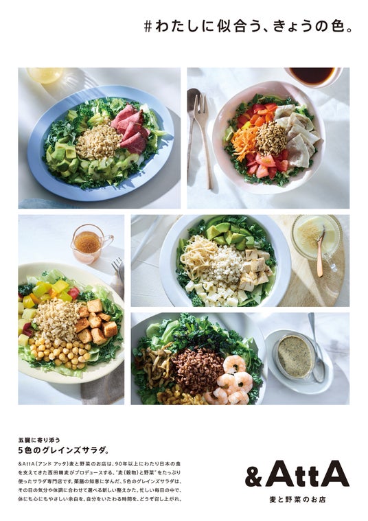 穀物ひとすじ90年を超える老舗企業である西田精麦株式会社(本社:熊本県八代市、代表取締役社長:西田啓吾)は、厳選した穀物と新鮮な地元食材を混ぜ合わせて食べるグレインズサラダの専門店「麦と野菜のお店&AttA」2号店を2025年4月24日にONE FUKUOKA BLDG.(通称ワンビル)にてグランドオープンします。穀物や野菜が持っている栄養をヘルシーに摂れるだけでなく、穀物が入っていることでしっかりとした満足感を得られるため、ランチで食べても夕食までしっかりとお腹を満たすメニューを取り揃えています。