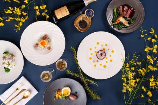 マンゴーとも相性が良い濃厚なキャビアと一緒に味わうマグロのセルクル仕立ての前菜は、口の中で甘みと酸味、旨味が調和し、これから続くコース料理に期待感をもたらします。お祝い事の伝統料理として食されるフォアグラは、竹炭や竹粉などをブレンドした餌で育てられた、クセがなく、やさしい味わいの『竹鶏たまご』(宮城県 白石)のポーチドエッグフライと芳醇な香りのトリュフ入りのリゾットと合わせ、まさに開業記念に相応しい一品です。メインは山形県寒河江市幸生地域で飼育される、幸せを運ぶ牛『幸生牛(さちうぎゅう)』のグリルをトリュフ香るマデラソースとともにご用意。口の中に入れた瞬間、じゅわっと旨味を感じるメインディッシュです。食事を締めくくるデザートは、さわやかなオレンジのババロアとチョコレートのジェラートを組み合わせ、初夏にぴったりなコースです。