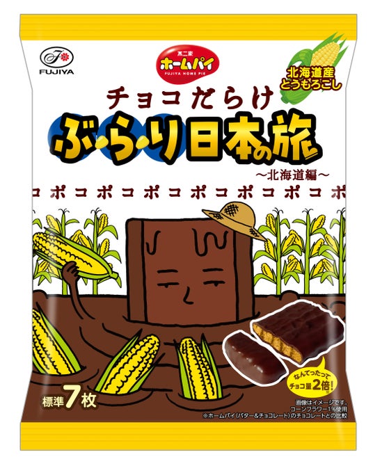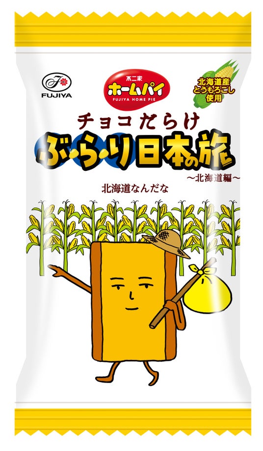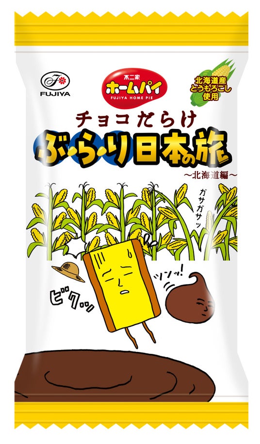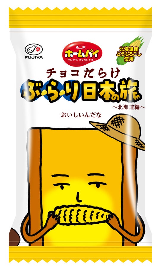 「ホームパイ」の商品キャラクター“イパムーホ”が、日本をぶらり旅しながら立ち寄った土地の名産を満喫していく、当シリーズ第2弾の旅先は「北海道」。ほのかに広がる北海道産とうもろこしのやさしい甘みがクセになる、期間限定のチョコだらけです。