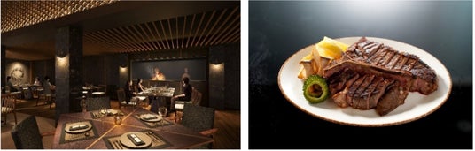 1.メインダイング「The Steak & Grill(ザ・ステーキ&グリル)」星空をイメージしたシャンデリアがきらめくシックなディナーでは近海で獲れた魚介や、豪快な肉のグリル料理をプリフィクスコースでお楽しみいただけます。