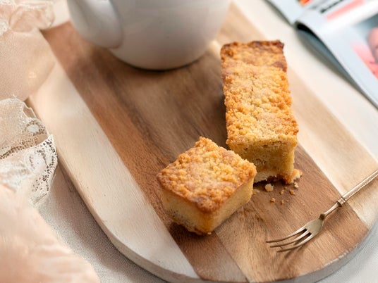 韓国でトレンドスイーツが集まる百貨店で出会った「バターバー」。現地ではしっとりしたバターケーキとザクザクのタルト生地が2層になったお菓子です。これを、パティシエのアイデアで3層構造にアレンジし、よりバターの濃厚でリッチな味わいをお楽しみいただける一品に仕上げました。サクッとした食感の塩バニラクッキー生地の上に、濃厚な味わいのバターリッチバーのメインとなる生地をのせ、さらにその上からアーモンドパウダーの香ばしさとほろほろとした食感のアーモンドシュトロイゼル生地を重ねました。味わいのベースとなるバターケーキの生地にはきび糖を使用することで、濃厚な甘さの中にもコクと風味を引き立たせています。製品中23%にバターを使用。濃厚でリッチなバターケーキの味わい、塩バニラクッキーのほどよい塩味がやみつきになる魅惑の焼き菓子です。
