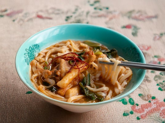 ・成城石井自家製 自家製カルグクスと骨付き鶏煮出しスープの 旨辛うどん(タットリタン風) 755円 / 4月26日(土)発売