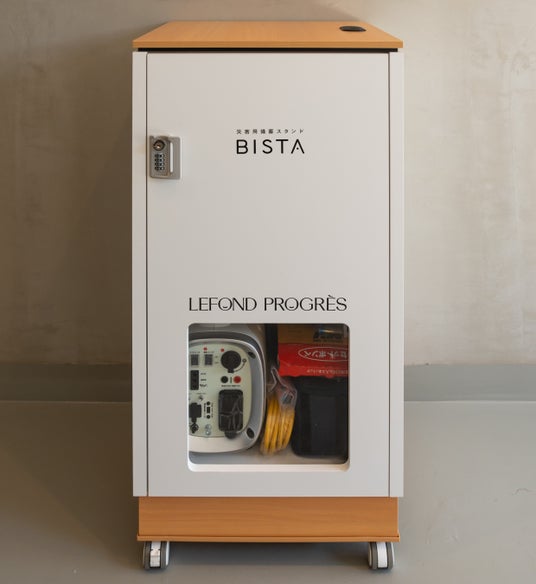 また、2階ビジネスラウンジには災害時に必要なものを備えた「災害用備蓄スタンドBISTA」を設置しています。