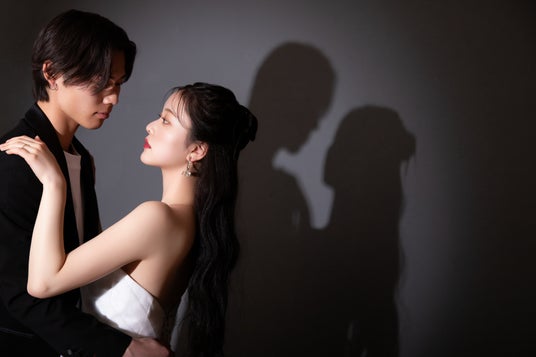 お二人を主役に照らすスポットライトのようなライティングの中にきっちりかしこまり過ぎないラフで上品なスタイル。スポットライトの影を活かした”シルエット”は更に優美なDressy感を演出し
