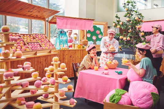 ~桃の果樹園をイメージした会場で桃のかき氷などひんやりスイーツとドリンクを楽しむ~