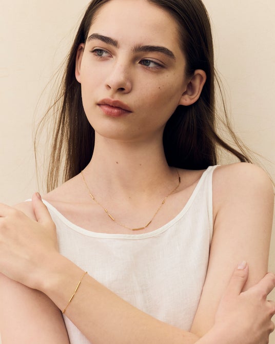 ネックレス¥14,300、ブレスレット¥11,000<ともにSV925(イエローゴールドメッキ)>