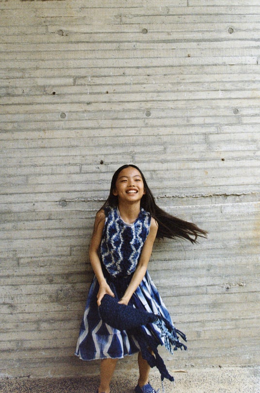 「伝統工芸の世界では、時間は刻まれるものではなく、それぞれの縫い目と結び目に静かに蓄積され、保持されています。私は長年、この瞑想的な時間の感覚を現代の生活リズムにどのように取り入れるかを模索してきました。私にとってテキスタイルは単なる素材やテクニックではなく、文化の記憶が形となったものであり、女性から女性へと受け継がれる尊い遺産です。私たちが縫うのは、布地だけでなく、歴史と感情の忘れ去られた縫い目なのです。ほつれた端や、指の跡は、アートの役割が現実を覆い隠すことではなく、むしろそれに触れることだと改めて私に気づかせてくれました。このZARAとのコラボレーションは、私が初めて「宿るべき身体」を得た機会でした。これらの作品はただ静止しているわけではありません。身につける人とともに動き、呼吸し、次第にその姿を現していきます。それは動きの中で紡がれる繊維の言語です。私は人々が日常の静かな折り目の中で、クラフトのぬくもりを感じられることを願っています。それは大げさな表現によってではなく、長い旅を経てあなたのもとへと運ばれてきた束ねられた糸、布の折り目などのさりげないディテールが、やわらかいものに触れたいとあなたを立ち止まらせるものなのです。」とファンルー リンは語ります。
