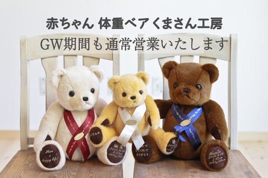 GW期間中も通常営業!「体重ベア/ウェイトベア」を製造販売する「くまさん工房」は2025年ゴールデンウイークも、毎日受注・制作・出荷いたします。楽天市場の「最強翌日配送」で“すぐ欲しい”に応えます
