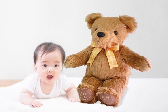 誕生時の重さをくまさんに保存する「体重ベア」は抱っこする度に感動の重みを実感