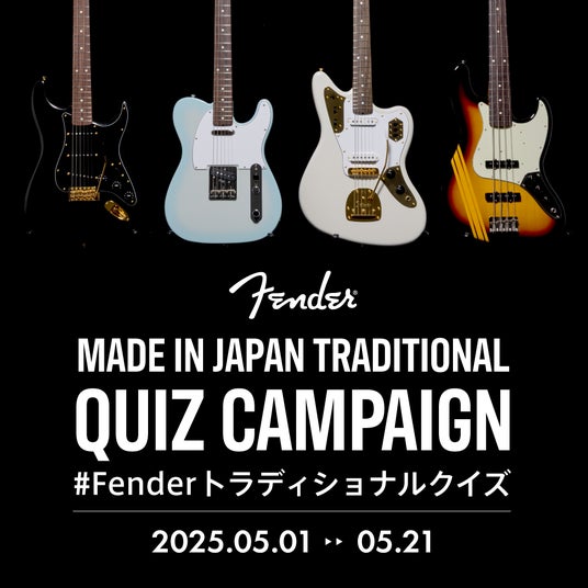 新コレクションの発売を記念し、『Made in Japan Traditional』に関するクイズキャンペーンを実施します。毎回ランダムに出題される、シリーズにまつわる3問のクイズにチャレンジいただいた方の中から抽選で、Made in Japan Traditional 2025 Collectionの ストラトキャスターモデルなど、豪華賞品をプレゼントします。