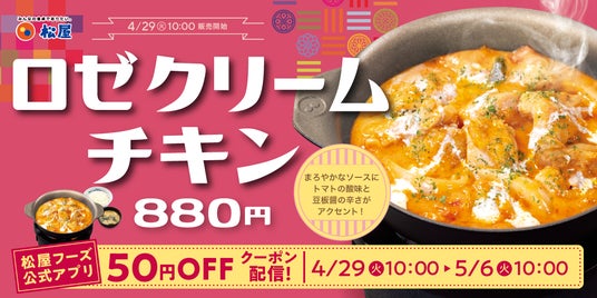 このたび松屋フーズ(本社:東京都武蔵野市、代表取締役社長:瓦葺一利)では、牛めし・カレー・定食・その他丼の「松屋」におきまして、2025年4月29日(火)10時より「ロゼクリームチキン」を販売いたします。
