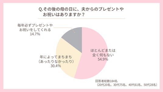 - 夫からの母の日は例年54.9%が「ほとんどまたは全く何もない」と回答