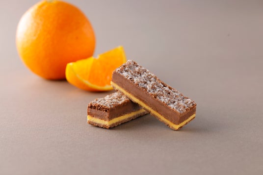 ほろ苦いオレンジとチョコレートの2種のフィリングをココアパイでサンドしました。