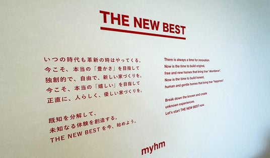 『myhm base』は家づくりを驚くほど快適にしていくという理念のもと展開するショールームです。コンセプトはTHE NEW BEST 。世界に誇る日本独自の建築の伝統と革新技術を融合し、過去のBESTに敬意を抱きながら、これからのNEW BESTを創り、地域の皆様に理想の住まいをご提案します。