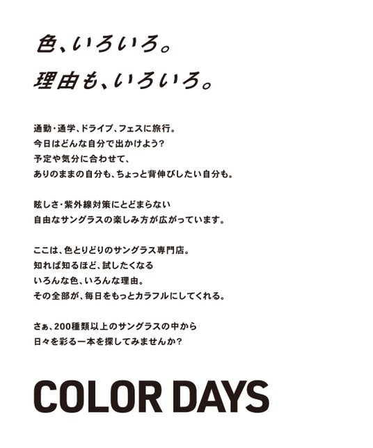 行楽シーズンに向けて、サングラス専門店『COLOR DAYS』ポップアップストアを大阪にて開催