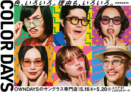 【OWNDAYS | オンデーズ】200種類以上のカラーレンズを販売する、サングラス専門店『COLOR DAYS』ポップアップを大阪で初開催!NMB48小嶋花梨さんやジョックロックのお二人などを起用