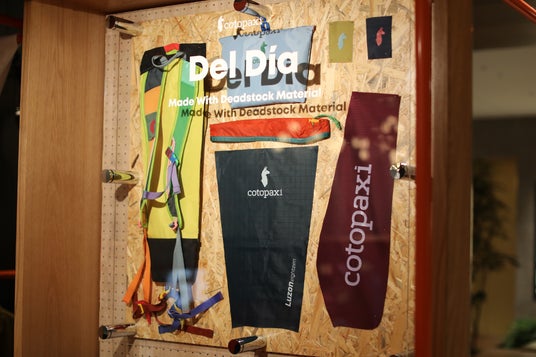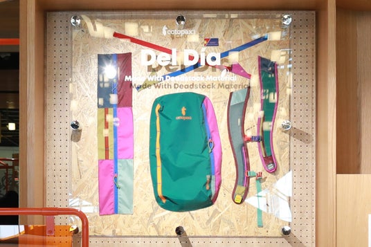 バックパックになる前の色鮮やかな生地を通して、Cotopaxiのサステナブルなものづくりを視覚的に伝えています。