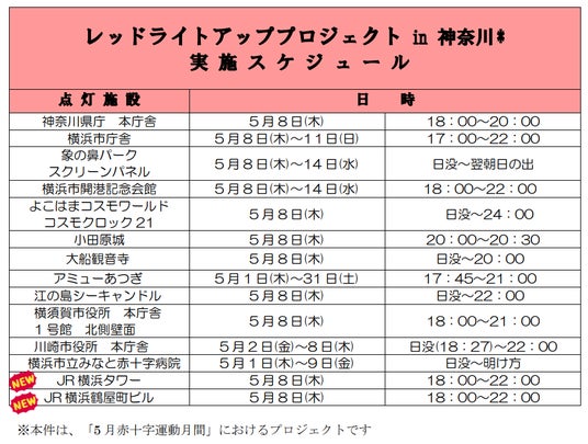 赤十字では、2018年から全国各地の歴史的建造物やランドマークとなる建物等をシンボルカラーである“赤色”に点灯することで、