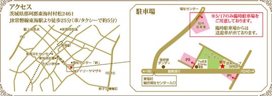アクセス:JR常磐道東海駅より徒歩25分(車/タクシーで約5分)