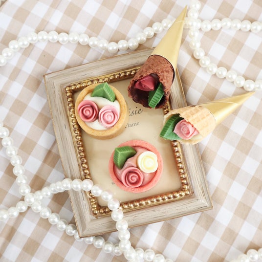 可憐なバラのチョコレートをあしらったタルトとコーンは、思わず目を奪われる美しさ。見た目にも華やかで、まるで花束のように感謝の気持ちを伝える、母の日にぴったりのギフトです。さらにオンラインショップ限定で、カーネーション鉢とのセットも展開。大切なお母さまへ、今年はバラのチョコレートを贈ってみませんか。