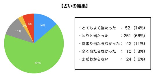 占いが当たったかどうかについては、全体の80%が当たったと回答しています。