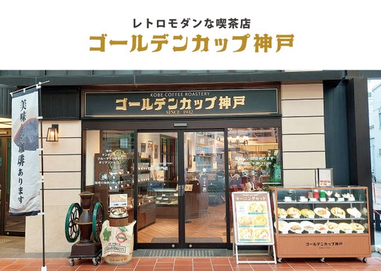 神戸市灘区で創業93年を迎える老舗コーヒー焙煎業者の日米珈琲が、歴史と技術の結晶であるコーヒーの味わいをより多くの方々に親しんでいただきたく、1年前神戸元町商店街にオープンしたゴールデンカップ神戸。「今甦るレトロモダンな喫茶店」をコンセプトに懐かしの純喫茶を意識した喫茶メニューやサイフォンで淹れたての本格珈琲を提供。