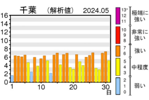 5月は過ごしやすい気温で、GWを皮切りに外出が増えるシーズンです。一方で、外出の際に気になる紫外線量も増えています。今回実施会場の千葉県でも、5月の日照時間は180時間超えと、4月よりも40時間以上も長くなり、さらに、日最大UVインデックス※2が「強」を示す日数も、4月の月2割から、5月には5割以上になるなど、量・強さともに注意が必要です。※3