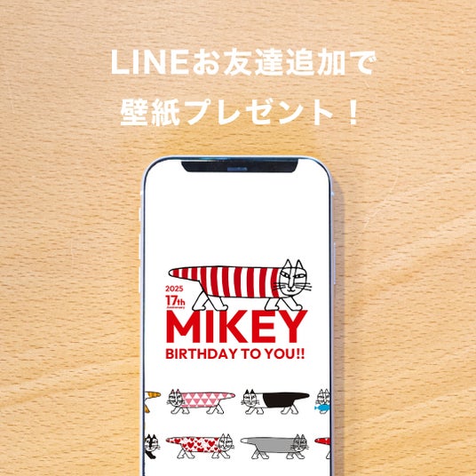 2025年4月30日(水)までの期間限定で、17匹の仲間が集まった最新アートワークのオリジナル壁紙をプレゼント中!マイキーの新商品も続々登場!